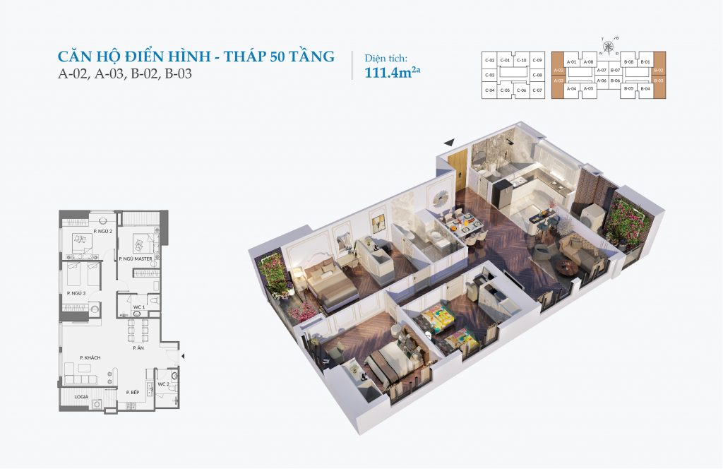 | Loại Hình | 1024 căn hộ 2PN – 3PN diện tích 70m2 – 112m2 |