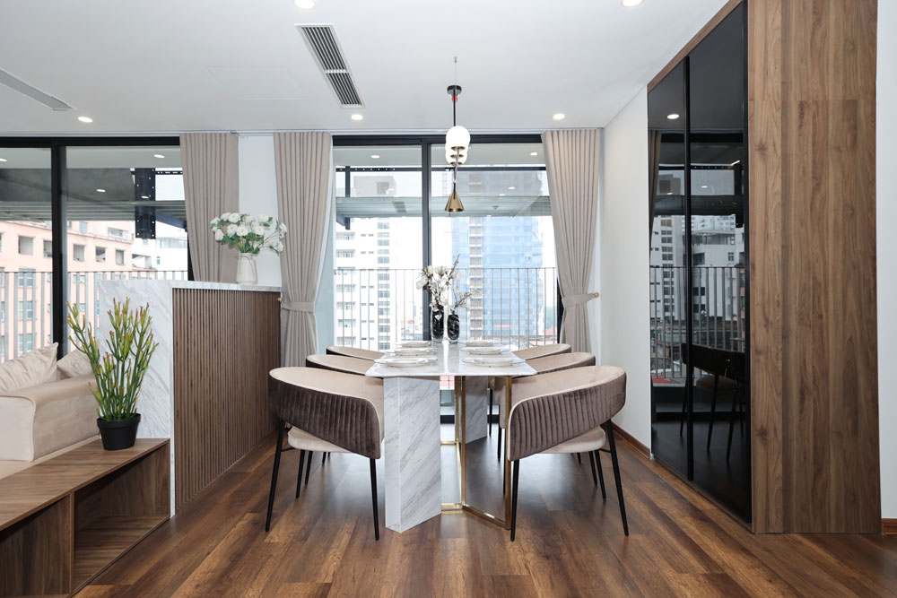 Một tổ ấm cân bằng – thịnh vượng được kết hợp hài hoà giữa xu hướng hiện đại sang trọng và nét cổ điển tinh tế. Mỗi căn hộ được thiết kế thông minh để bắt trọn những chuyển động của ánh sáng, tối ưu hoá tầm nhìn trên cao, thu trọn vẹn cảnh quan xanh mát nơi hồ Văn Quán cùng phố thị phồn hoa của quận Hà Đông vào trong từng ô cửa.